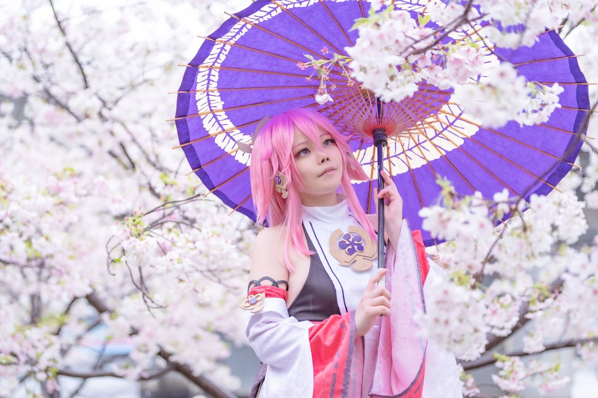 *コスプレ / cosplay 原神 (genshin impact) 八重神子𓂃🌸𓈒𓏸 📸→@SazabyK 天候が悪くてだいぶ大雨だったんですが、晴れにしか見えないライティングで撮影してもらいました!🙏✨