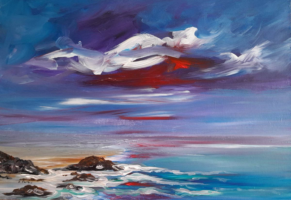 A new oil painting. #seascape #oilpainting #wildatlanticway #Connemara #ArtistOnTwitter #Oceans #sailing #boat #clouds