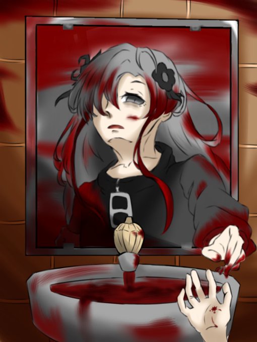 もう少し改良するかもですが『ギャラリア』をイメージしました!鏡から出てくる感じで描いてます #ヰ世界情緒 #ヰ世界情緒美術部