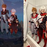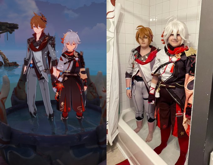 In game vs in real life ✨ Childe is @/Saylie_cosplay on instagram 😌💕 #Childe #Tartaglia #KaedeharaKazuha #Kazuha #GenshinImpact #Cosplay