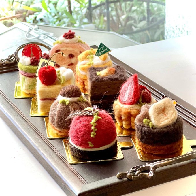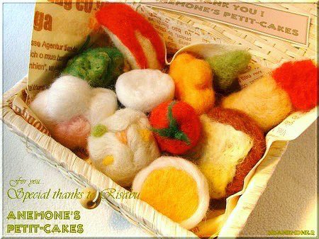 *羊毛フェルトのスイーツ* 番外編:羊毛フェルトのお弁(2004) かなり初期の頃、お友達への贈りもの。 まだまだ甘い造形ですね😆 バスケットに詰めて、 おままごとセット的に作りました。 #羊毛フェルト #羊毛スイーツ #福田りお #woolfelt #needlefelt #lainefeutrée #riofukuda #羊毛氈