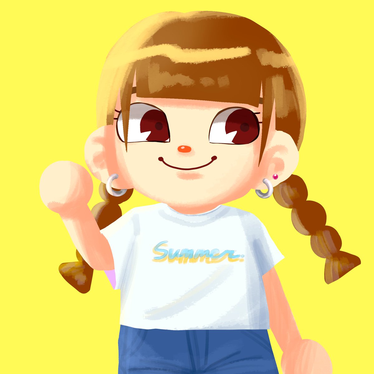 ポートフォリオサイト用にどう森風の自画像描いた😉😉