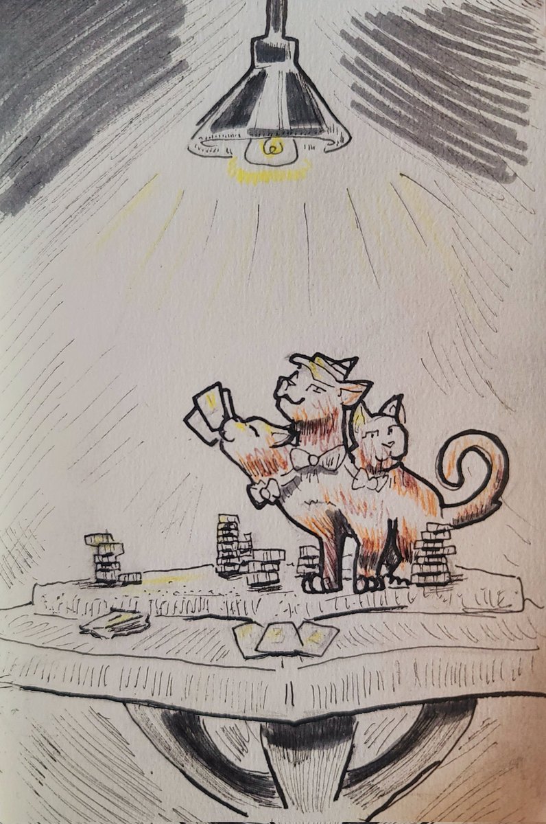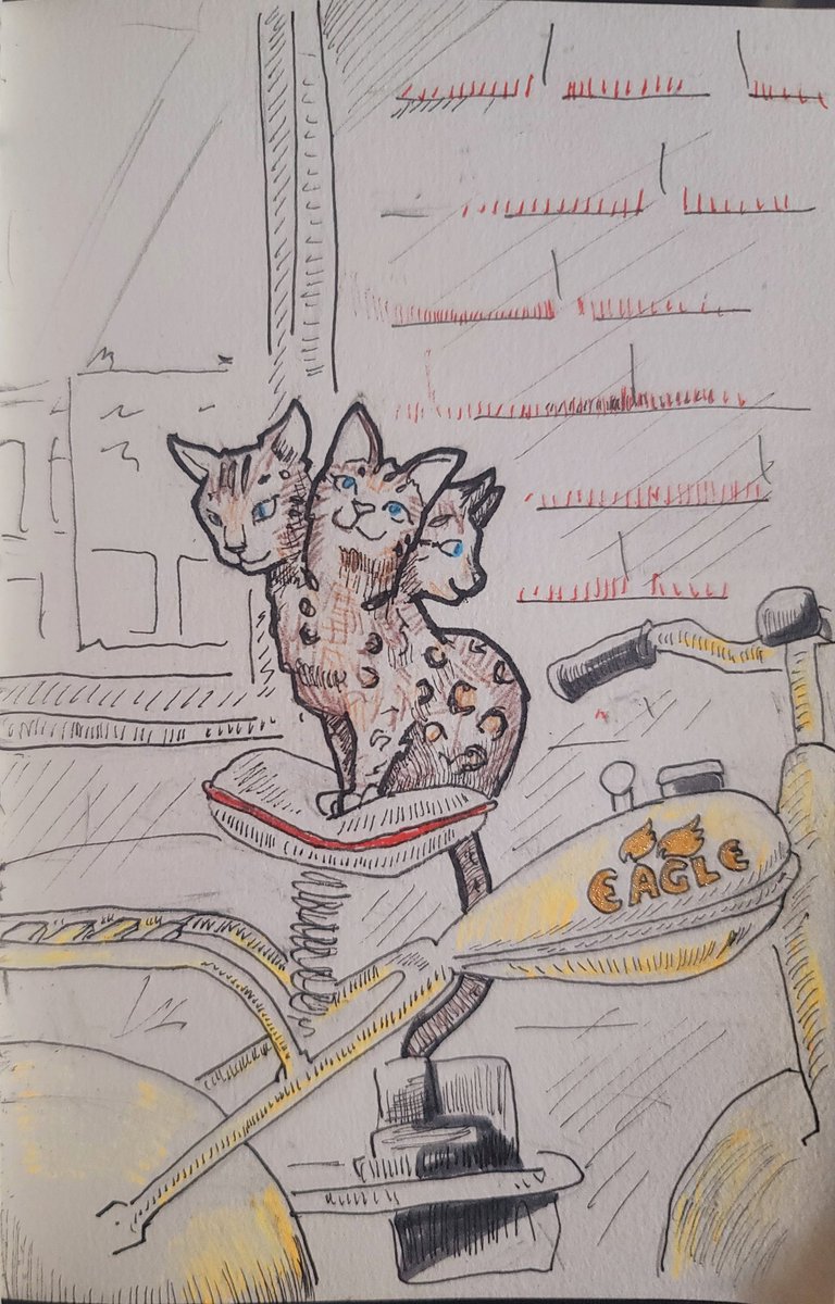 #inktober2022 Prompt for: -Day 20: Bluff And the quick doodle is a cerberus cat sorrel! #cat #doodle