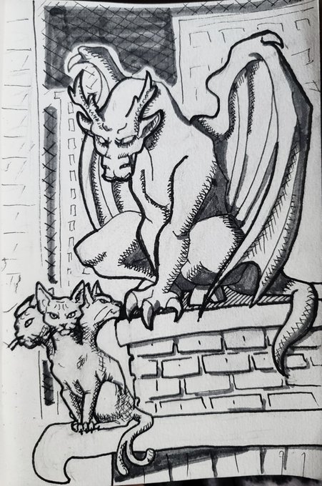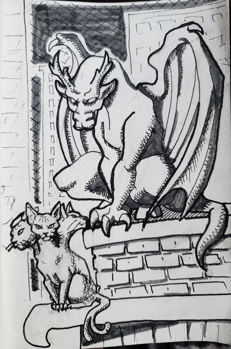 Inktober Day 1 prompt: Gargoyle #inktober2022 #inktoberchallenge Or Cerberus Cats for the Spooky Season, part 1: The Sphinx