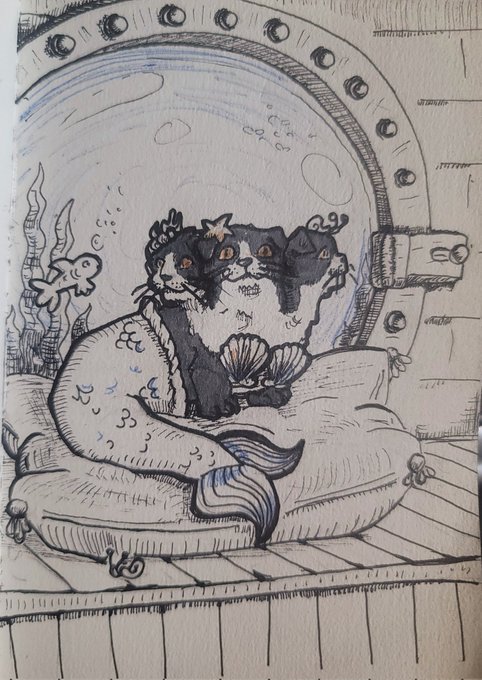 #inktober2022 Prompts for: -Day 14: Empty -Day 15: Armadillo -Day 16: Fowl -Day 17: Salty And the cerberus cat is a white American short hair alley cat 🤠 #cats