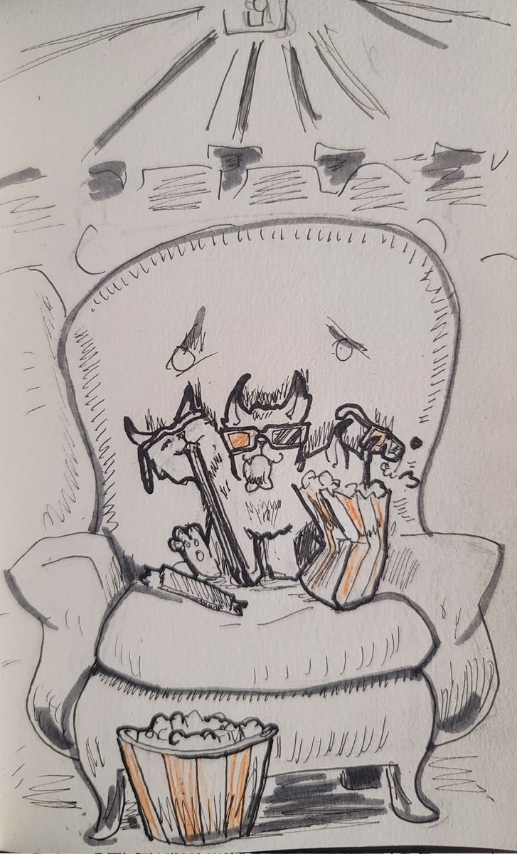 #inktober2022 Day 27 prompt: Snack A quick doodle for today with a bobtail Lynx sneaking into a scary movie 🍿 #doodle