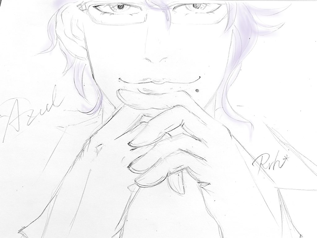 またまたアズールお絵描き✏️ 手から描いたら目までしか紙に入らなかった。。。ちょっとオリジナルが過ぎたかな😣🙏 でも私の中ではこんな風に変換されてるのかも。。。 #twstファンアート #アズール・アーシェングロット #ツイステ #アナログイラスト #私の中のアズール