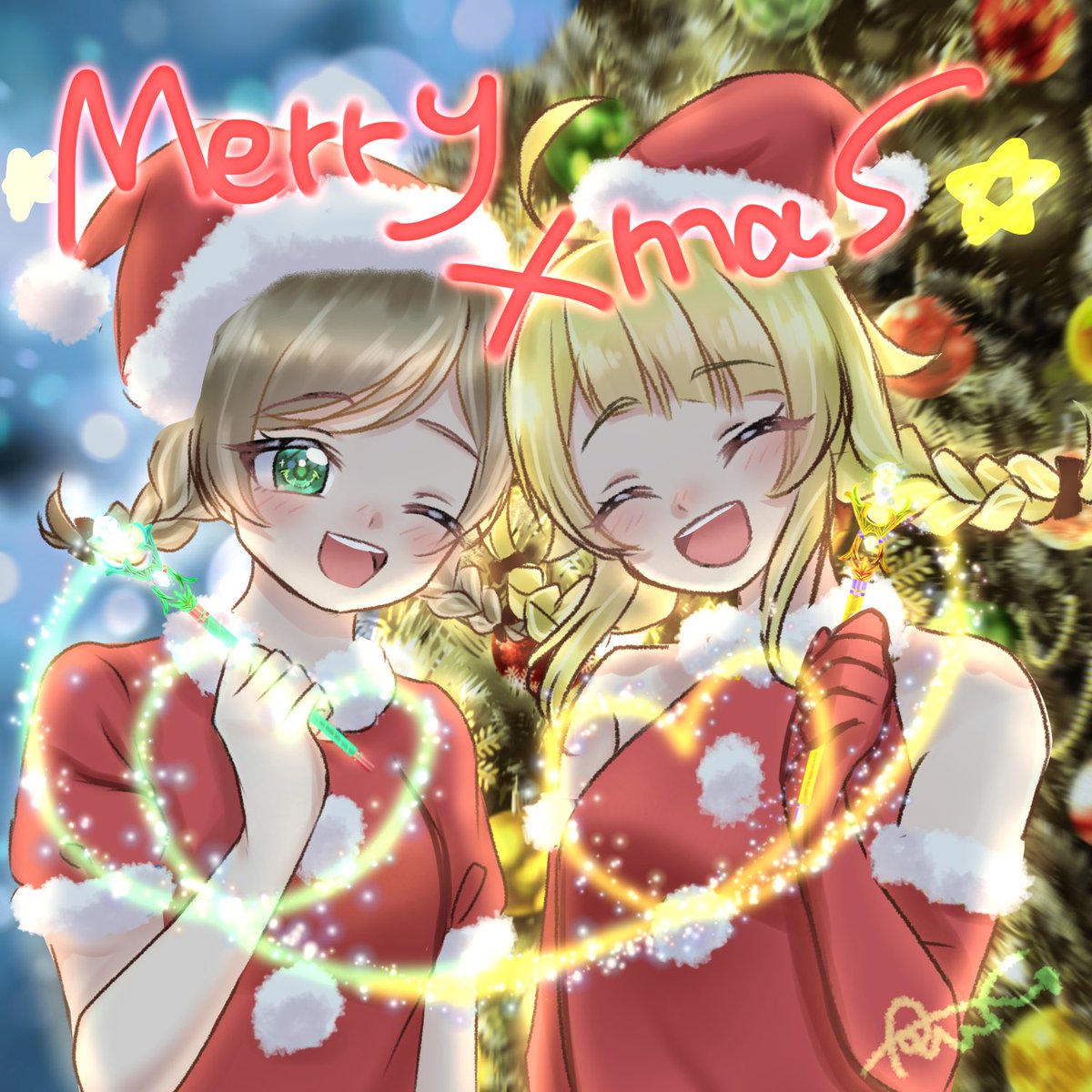 #うちあい うちあいさんからクリスマスソングが出たのですが‥私の大好きな『好き!雪!本気!マジック』でして‥たまらずファンアート描きました🥰💛💚 皆様もぜひ聴いてください〜❣️ nana-music.com/sounds/067c8031