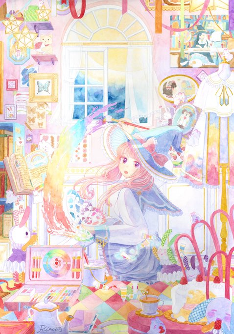 8 45 「私はかわいいお部屋の魔術師」 素敵な企画に参加させていただきます 大好きなかわいいものをぎゅぎゅっと詰め込んだお部屋を描くのが好きです❣️ #水彩の魔術師の集い 22/08/28 21:32
