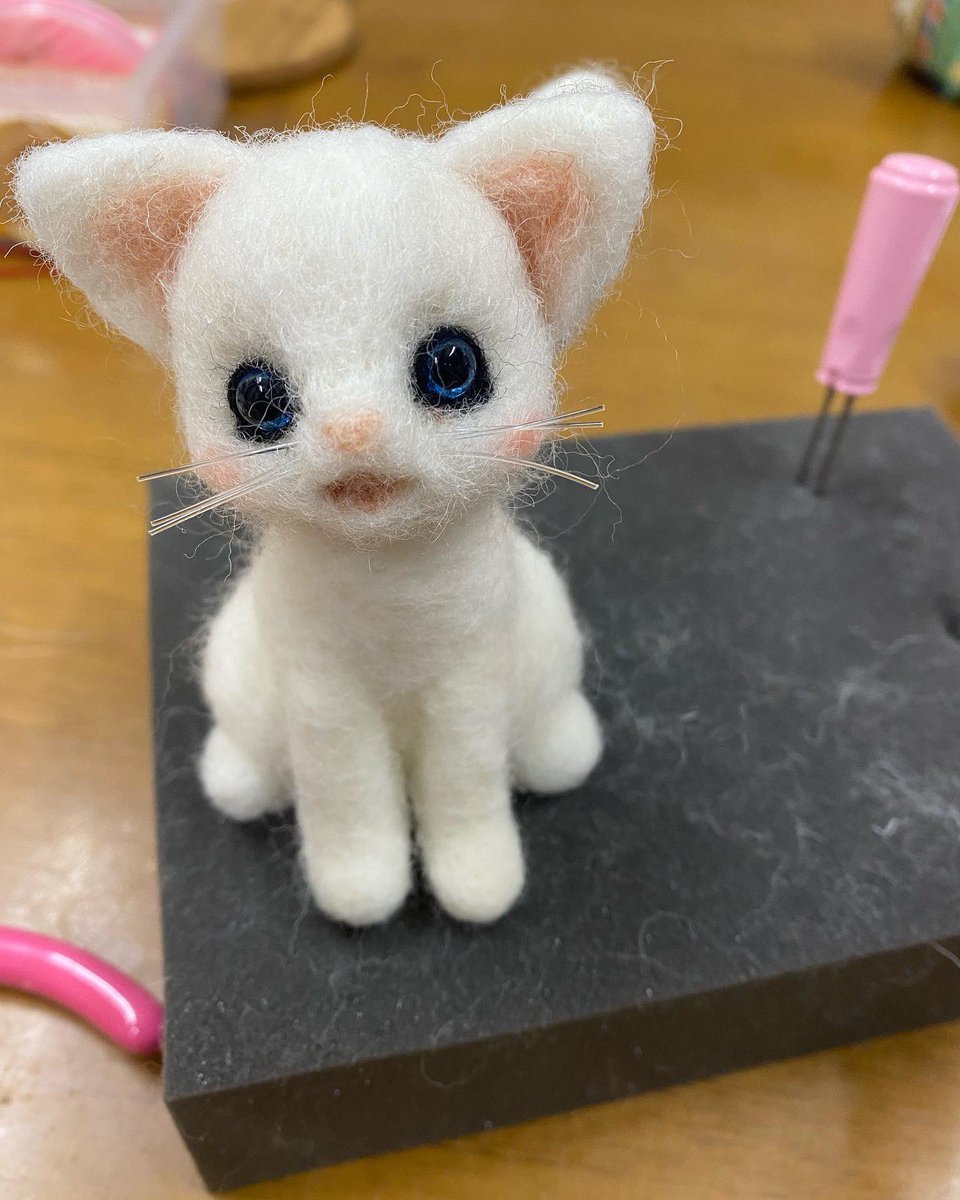 ねこちゃんを作ってみましたww(*´艸`*) 白い子はお友達の家の三毛猫ちゃん風にしてプレゼントしました〜 喜んで貰えて良かったです(*´艸`*) #羊毛フェルト #ねこ #ハンドメイド好きさんと繋がりたい
