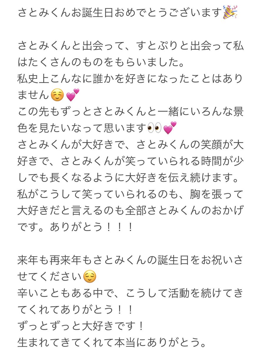 ♡o。 ..:*♡o。 ..:*♡o。 ..:*♡o。 ..:*♡o。 ..:* 私にとってもさとみくんは宝物です ♡o。 ..:*♡o。 ..:*♡o。 ..:*♡o。 ..:*♡o。 ..:* 生まれてきてくれてありがとう!! 大好きなさとみくんに精一杯の愛をこめて届けます😌💕 #さとみくん #さとみくん誕生祭2023