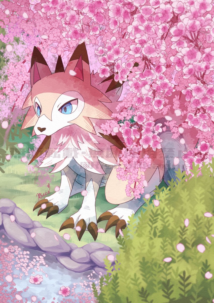 桜吹雪に佇む妖 #ゾロアーク #ポケモンイラスト