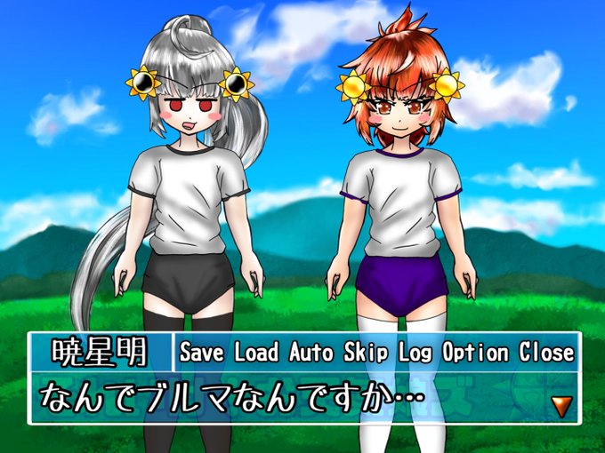 太陽の戦乙女 暁星旭(17)♀ #ライジングちゃん成長記録 #創作女児小学生ズ…? 🌑「ロングツインテ…ふっ、私はとうに小学生のうちに卒業しましたよ」 ☀️「いんだよしたい髪型すんのが青春ってもんでしょ!!」