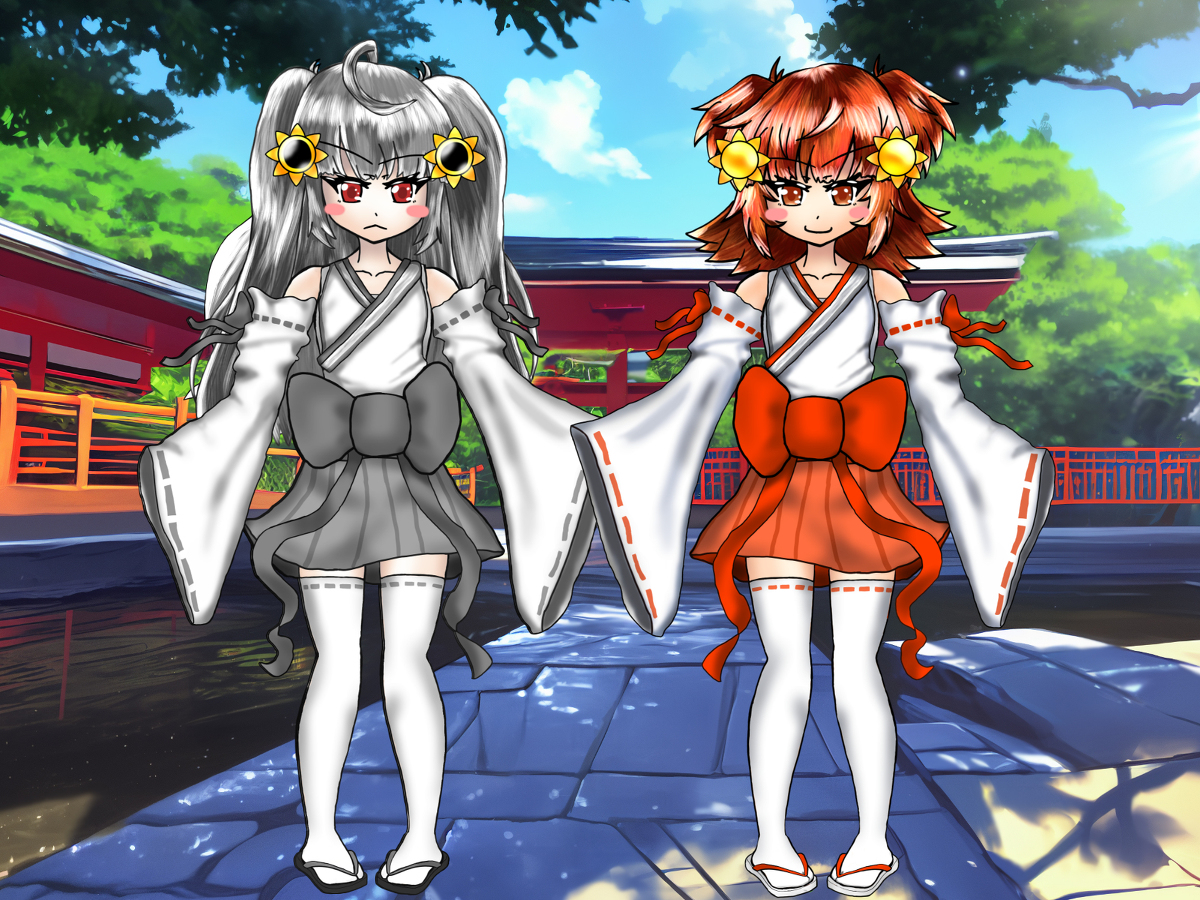 ライジングちゃんの陰、エクリプスちゃんの立ち絵ver.2完成ですねぇ! ほぼほぼそのまま素材を活用できるのでライジングちゃん用のコスプレ衣装もそのままカラーを変えて流用可能なのがよし! 🌑「旭にできて私にできないことなどないのです」フンス #ライジングちゃん成長記録 #創作女児小学生ズ