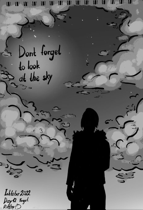 Day 12. Forget Recently, I read in the letter from 18yo me to me now "don't forget to look at the sky", which I absolutely forgot. Now I try to look at the sky whenever I can. Sometimes it wakes me up from the thoughts and worries #Inktober #inktoberday12 #inktober2022 #sky