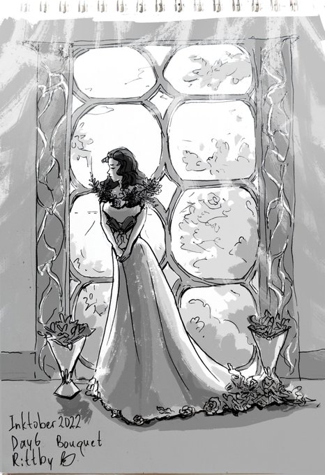 Day 6. Bouquet Someone has read too many mangas with all their tragic love, castles and nobility... #Inktober #inktober2022 #inktober2022day6 #manhwa