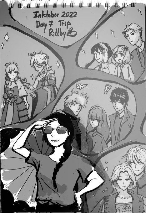 Day 7. Trip Running from the reality into my favourite stories. Anti-stress trip kind of. #inktober2022 #Inktober #inktober2022day7 #cheeseinthetrap #SPYxFamily #Genshinlmpact #AYAKA #KAZUHA #TheRemarriedEmpress #manhwa