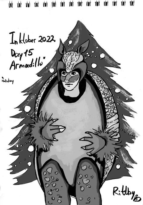 Day 15. Armadillo What can I draw if not a holiday armadillo 😌 #Inktober #inktober22 #Inktoberday15 #friends