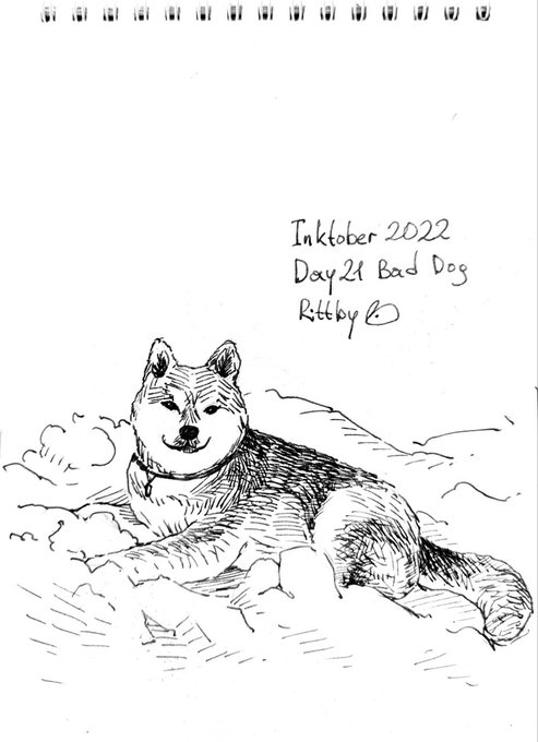 Day 21. Bad dog The dog isn't bad, actually, but behind cute look there is a tonne of mischief and naughtiness #Inktober #inktober2022 #inktober2022day21 #Dog