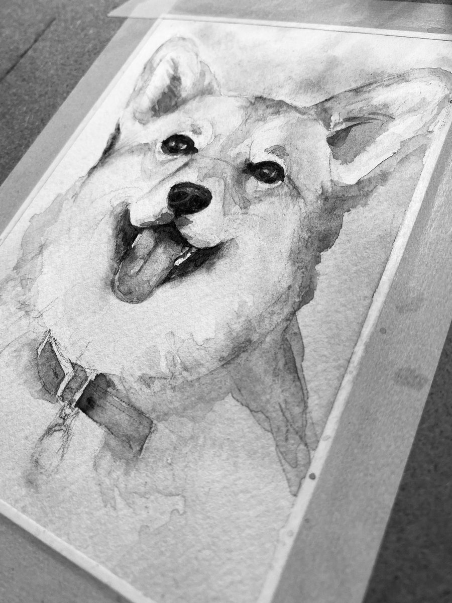 2 30 唐突に描きたくなった🎨🖌 #水彩画 #途中経過 #わんこ 22/02/02 16:24