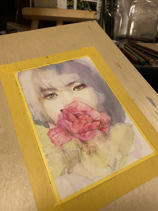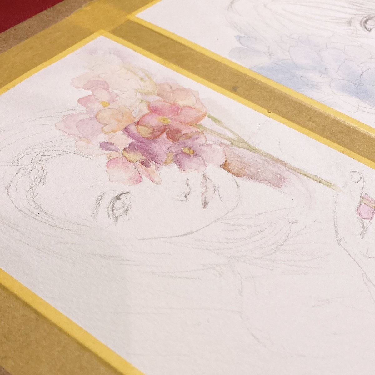 納得できるまで向き合ったら終わりにする🎨🖌 #水彩画 #人物画 #花 #wip #自分時間 #まだもう少し