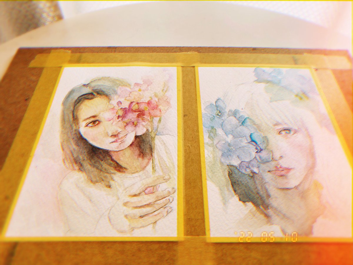 1 28 自分時間、、うまく使えない、、 ご飯作らな、、 #水彩画 #人物画 #花 #うまく描けん 22/06/22 19:09
