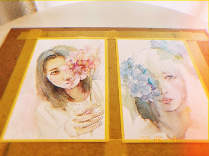 4 55 6月最後に🎨🖌 #水彩画 #人物画 #紫陽花 #難しい #練習 #頑張ろ #時間大切 22/06/30 17:19