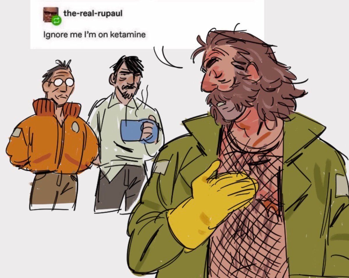 jean we need to talk about this new emo phase youre going thru, you havnt taken the wig off in a week, its getting concerning #DiscoElysium #jeanvicquemare #harrydubois #KimKitsuragi #art #drawing