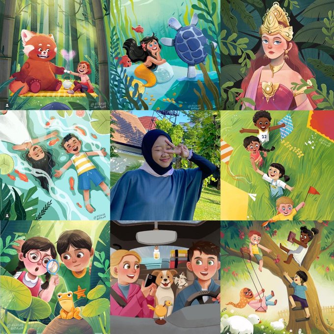 Here’s my #artvsartist2022 dominated by green and nature as a reflection of my zen 💛 This year was my starting point as a full-time illustrator and I’m so grateful for it #artvsartist