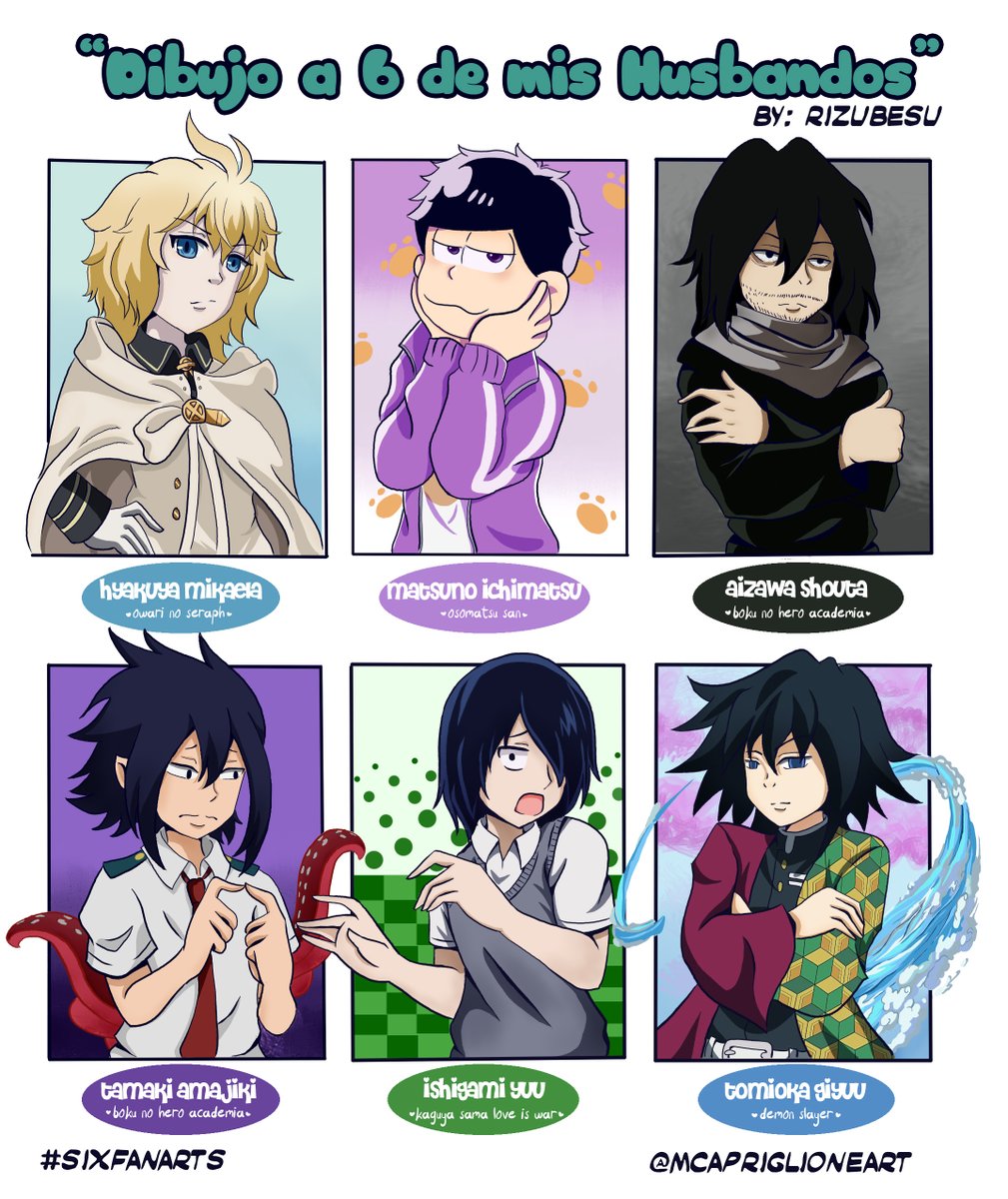 aqui esta el resultado del video! #sixfanarts ahora quise hacerlo con mis husbandos #mikaelahyakuya #ichimatsu #aizawashouta #tamakiamajiki #yuuishigami #giyuutomioka