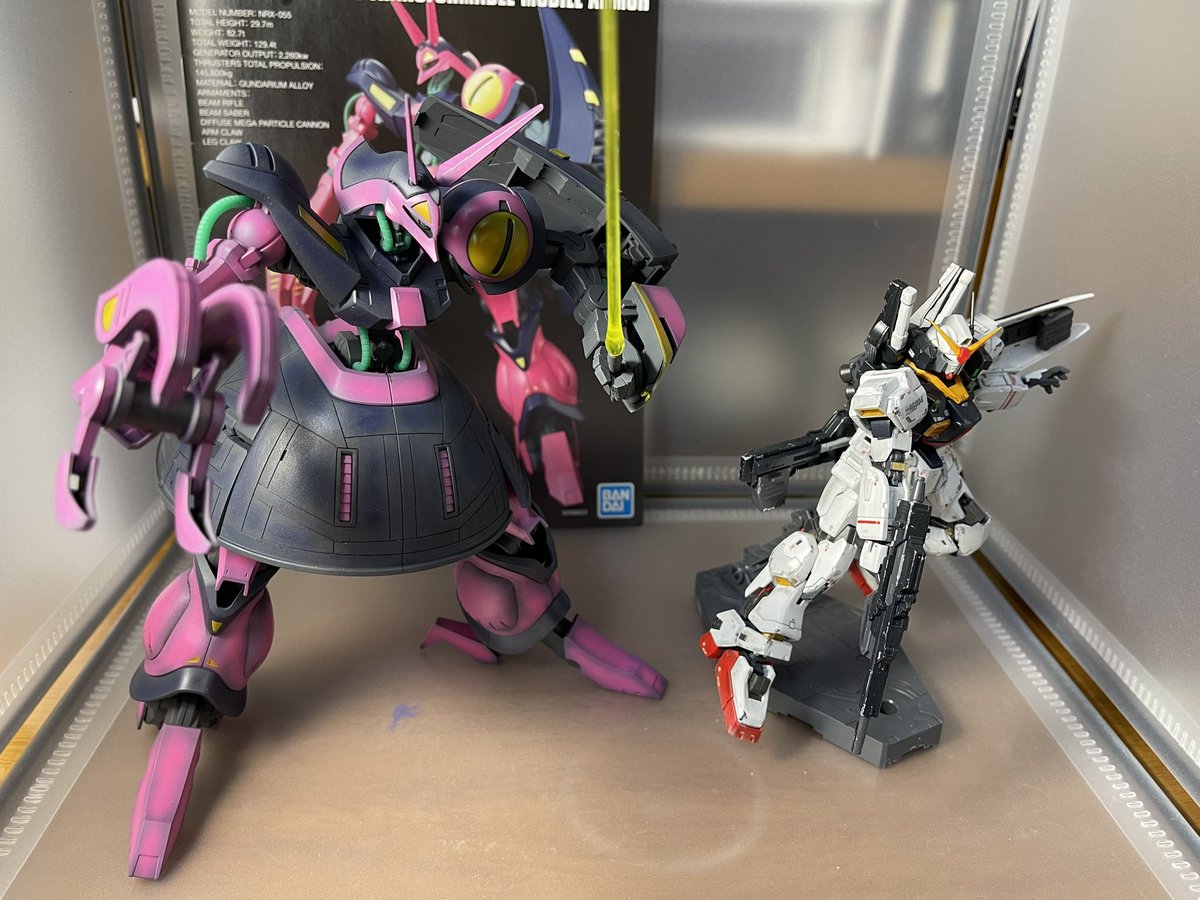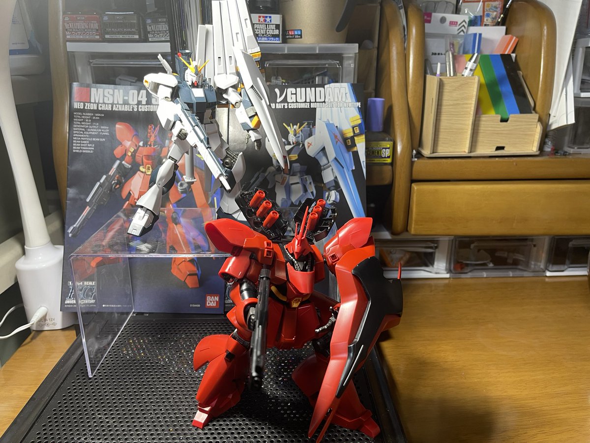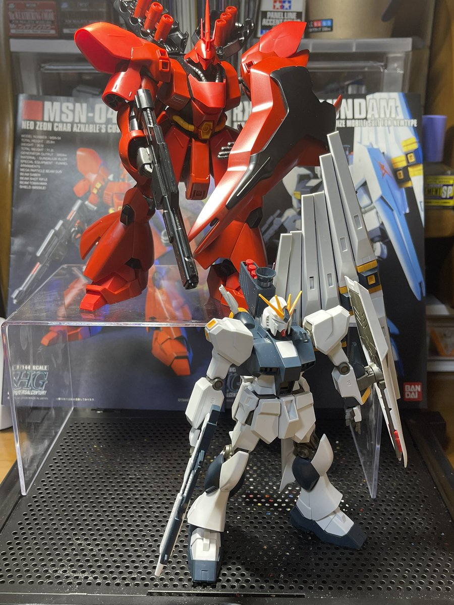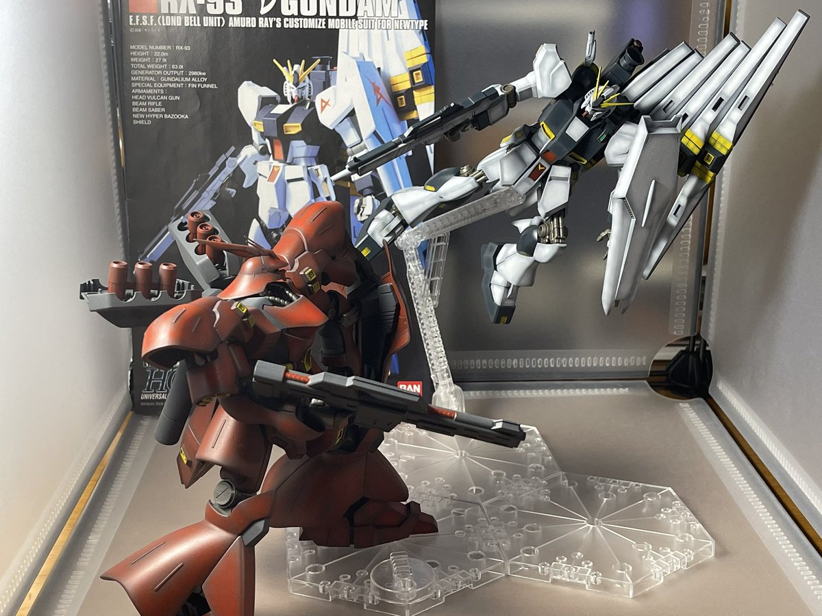 νガンダムは伊達じゃない!! HG νガンダム塗装やっとおわた 前回作ったサザビーと一緒に パシャリ #ガンプラ #ガンプラの画像貼るとRTされると聞いて #ガンプラは自由だ #ガンプラ好きと繋がりたい