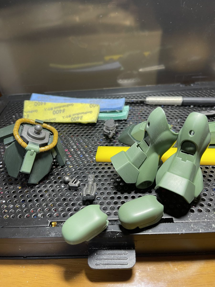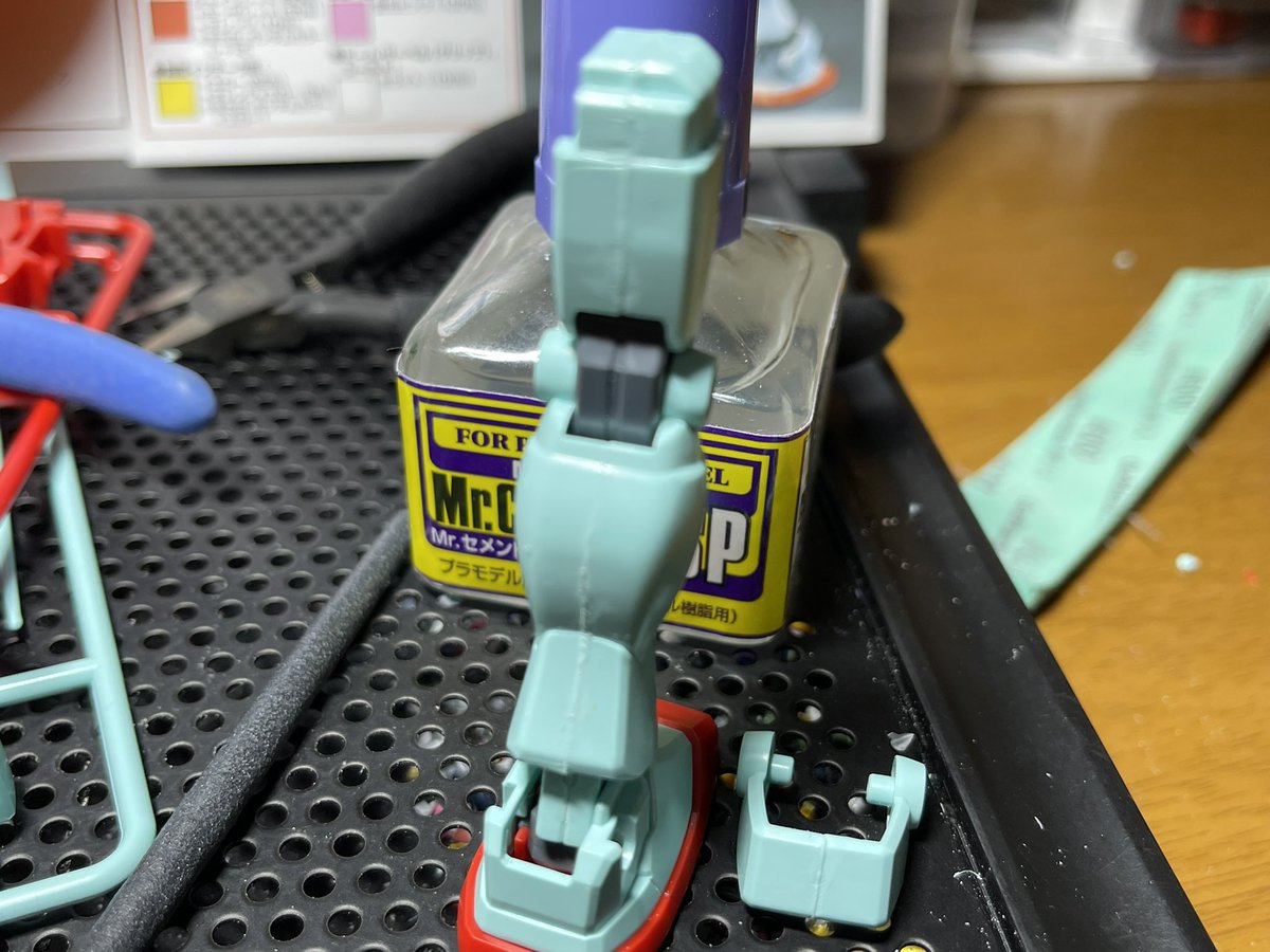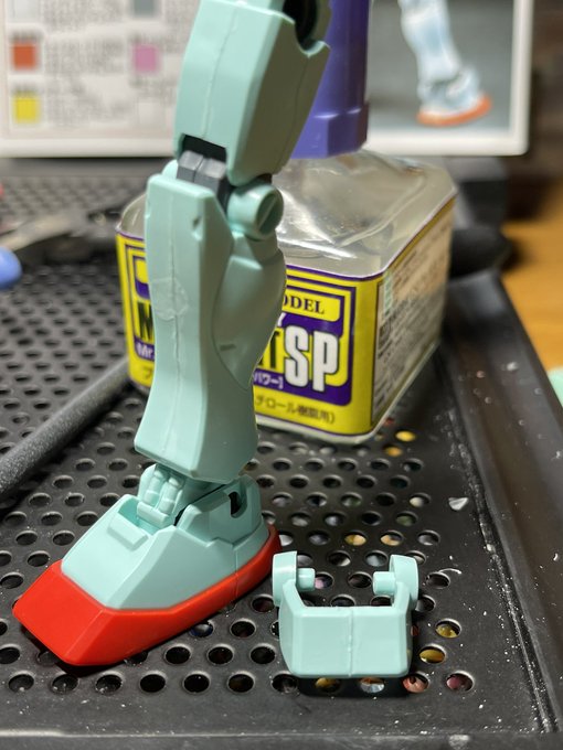 今日の作業はここまで やっぱMGはパーツが大きくて作りやすい その分ヒケも目立つんで表面処理とか大変そうだけどね 足だけでもホバーリングしているようなポージングで1枚 #ガンプラ好きと繋がりたい #ガンプラは自由だ #ガンプラの画像貼るとRTされると聞いて #ガンプラ