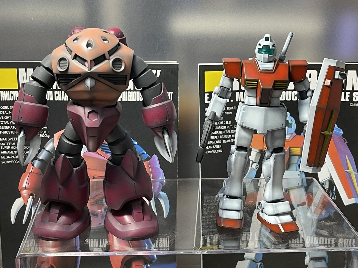 先週はHGジムと以前素組だけしてあったHGシャア専用ズゴックを塗装まで完成させました やっぱファーストのモビルスーツはシンプルだけど好きだなぁ 今週は何作ろうかな #ガンプラ #ガンプラの画像貼るとRTされると聞いて #ガンプラは自由だ #ガンプラ好きと繋がりたい
