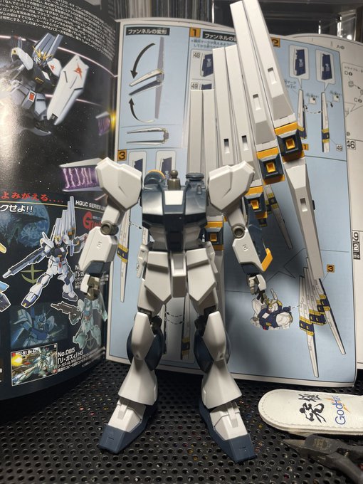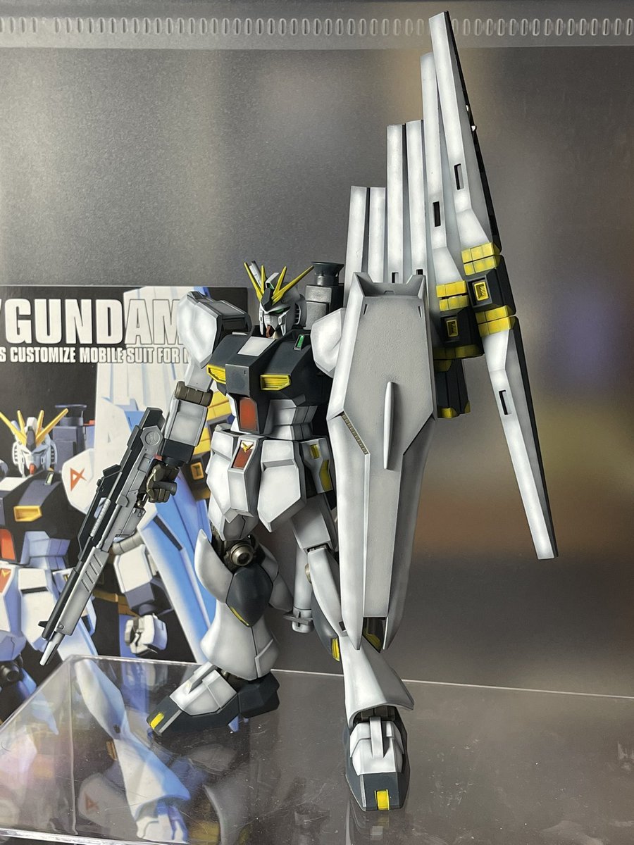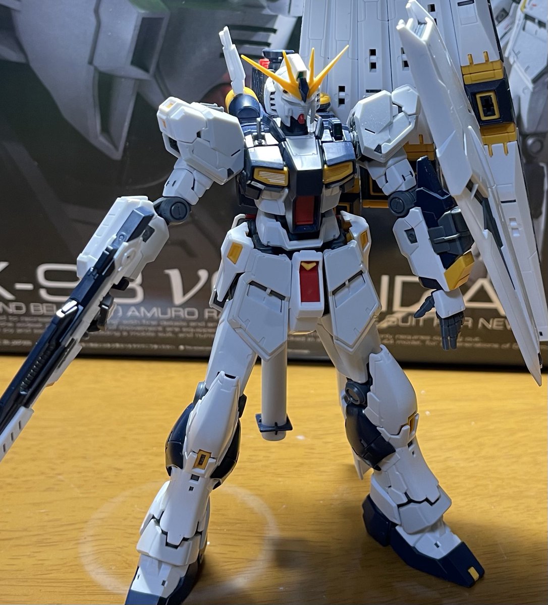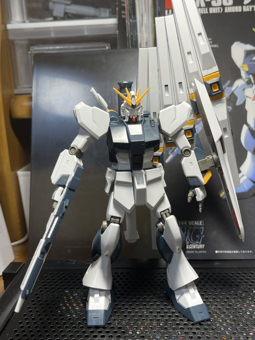 HG νガンダム素組完成 武器以外はほぼ合わせ目がなく特に頭部パーツが凄すぎ νガンダムとサザビーは思い入れが強い機体なんで並べると興奮しちゃいますw 明日はガンダムベース当たったんで日曜に塗装かな #ガンプラの画像貼るとRTされると聞いて #ガンプラ好きと繋がりたい #ガンプラは自由だ