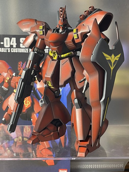 HGサザビー塗装まで完成 ただ立たせてるだけのこのシルエット 圧倒的な重量感がカッコ良すぎ 下から見るアングルもいい #ガンプラ #ガンプラの画像貼るとRTされると聞いて #ガンプラは自由だ #ガンプラ好きと繋がりたい