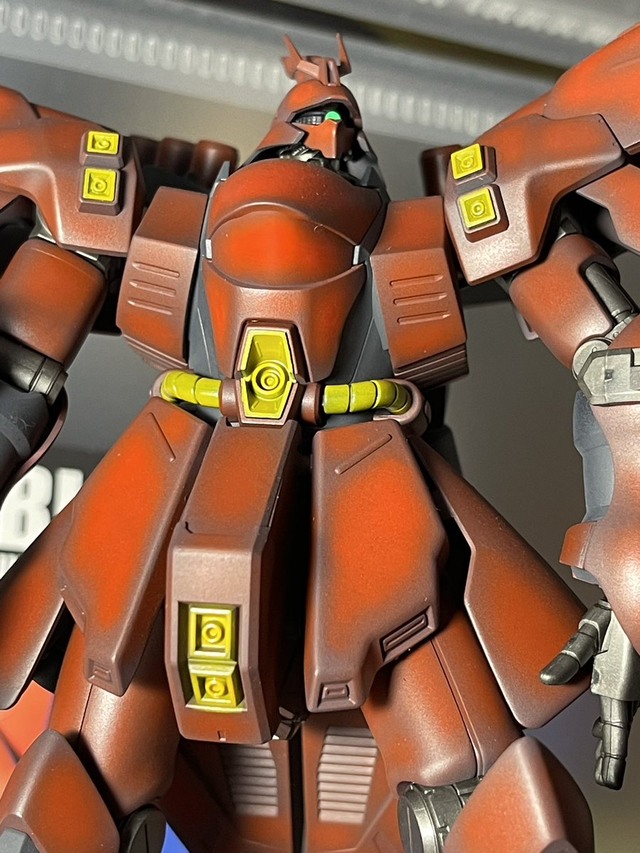 HGギラドーガ塗装おわた 爆睡してしまい今日はこれしか塗装できんかった 量産機の中でも好きなデザインのギラドーガ やっぱカッコイイなぁ ジェガンも作って並べたい #ガンプラ #ガンプラの画像貼るとRTされると聞いて #ガンプラは自由だ #ガンプラ好きと繋がりたい