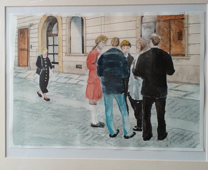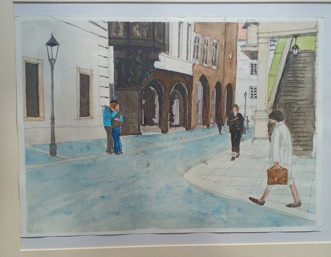 [カレル通り] 0164 5.4.8 中世貴族の衣装で チケットの手売りでもして見えたのでしょうか #水彩画 #プラハ