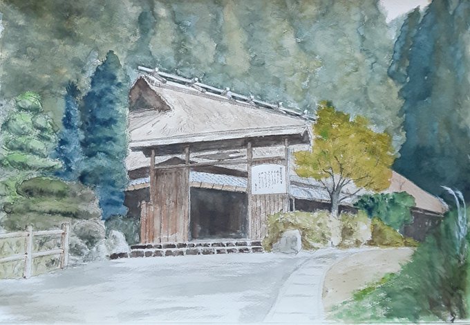 [旧家] 0154 5.3.29 旧三宅家住居 近代農家建築の代表例だそうです #水彩画 #風景画 #大正村観光施設