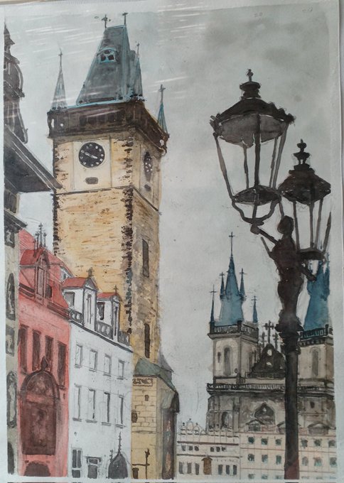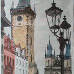 2 1 [百塔の街] 0168 5.4.12 プラハは百塔の街と言われる処ですがさすがに見事な塔がありました #水彩風景画 #旧市庁舎 23/04/12 04:59