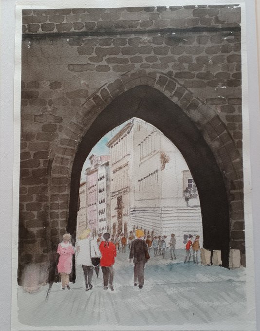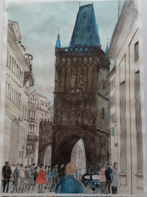 2 2 [百塔の街] 0176 5.4.20 17世紀には実際に火薬の倉庫として使われていたそうです #水彩風景画 #火薬塔 #チェコ #プラハ 23/04/20 05:07