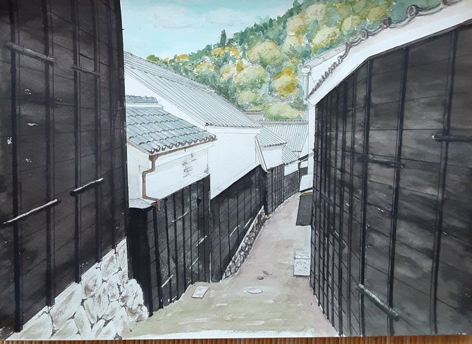 [関宿] 0158 5.4.2 東海道53次江戸から数えて47番目 の宿場 関宿は昔の風情が残る処でした #水彩画 #風景画 #亀山市関町