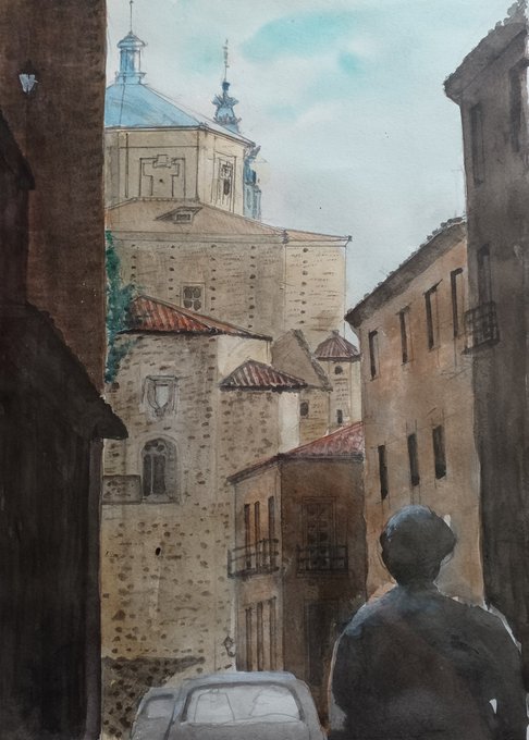 2 15 [Hold that pose!] 0228 5.6.11 マドリッド旧市街は観光スポットが徒歩圏内 楽しい旅でした #水彩風景画 #マヨール広場 23/06/11 05:03