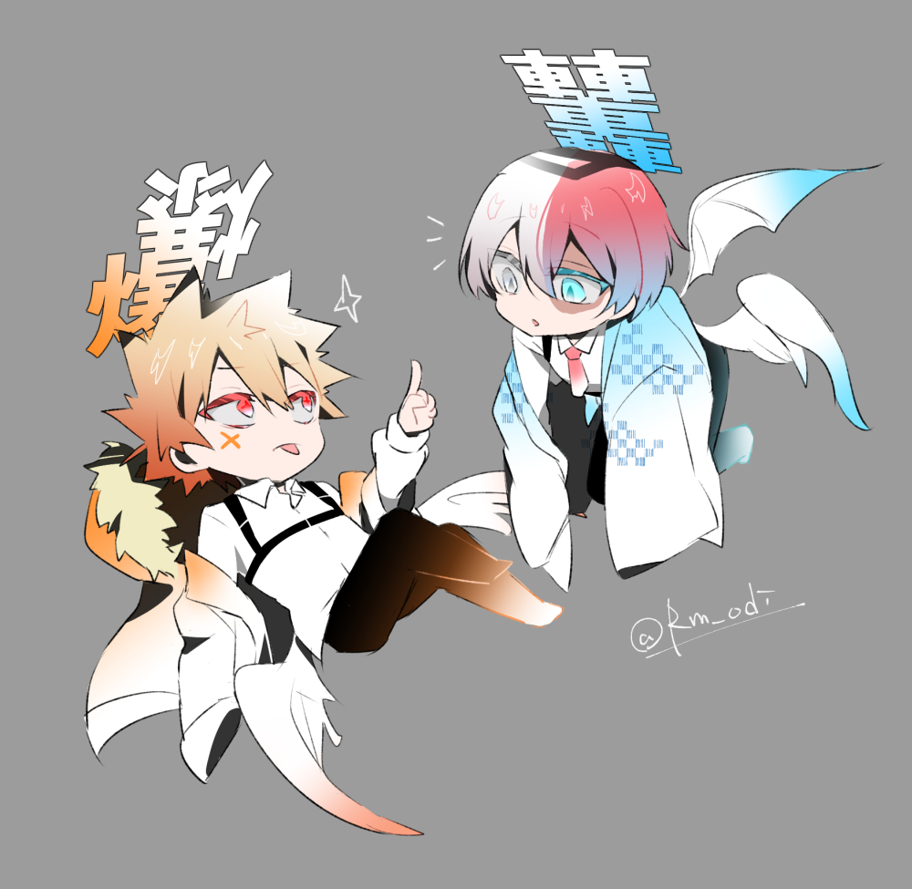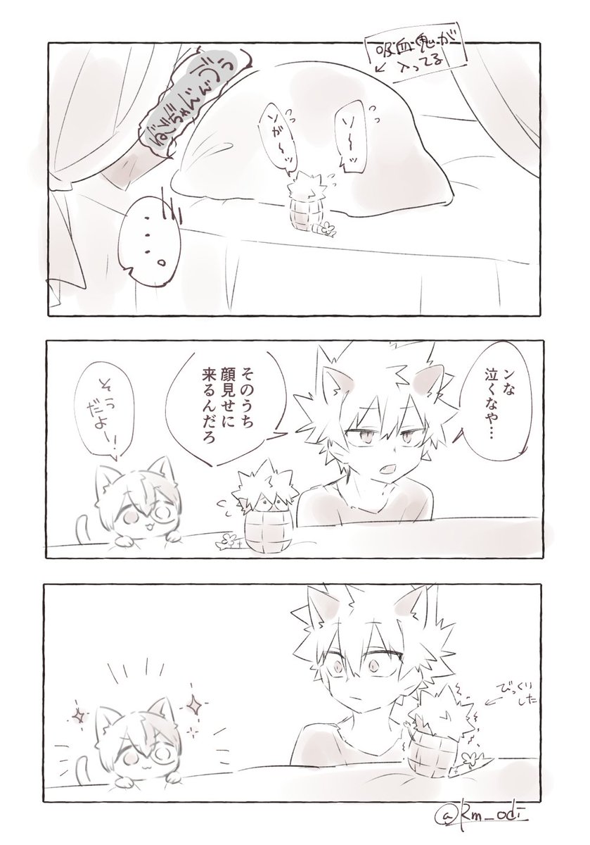 人々さんちのねこちゃんとうちの🐺🦇+🧨ちゃんのファンアートです(※掲載許可頂いてます)