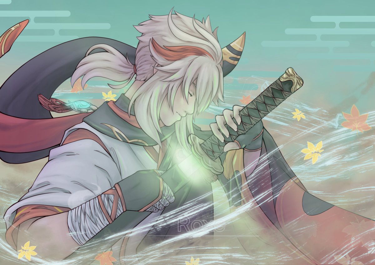 "There are leaves around — and I know just the tune to accompany them, if you wish to hear it." New Kazuha art to update some prints! :,D I am happy again doing something productive like this #kazuha #GenshinImpact #genshinimpactfanart #fanart