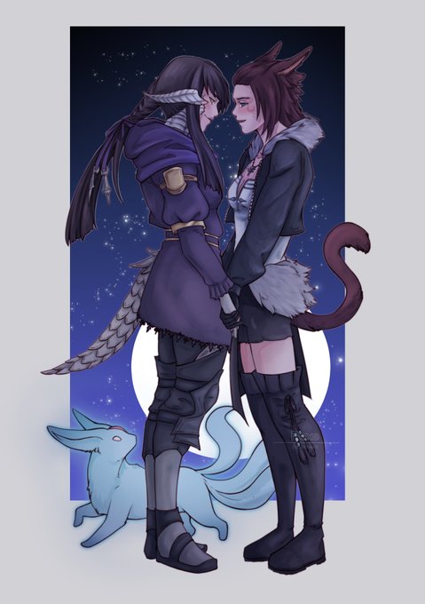 Commission of Yugiri and @Lani__Irene WoL being so cute together :,DDD #ffXIV #finalfantasyXIV #Finalfantasy #FF #fanart