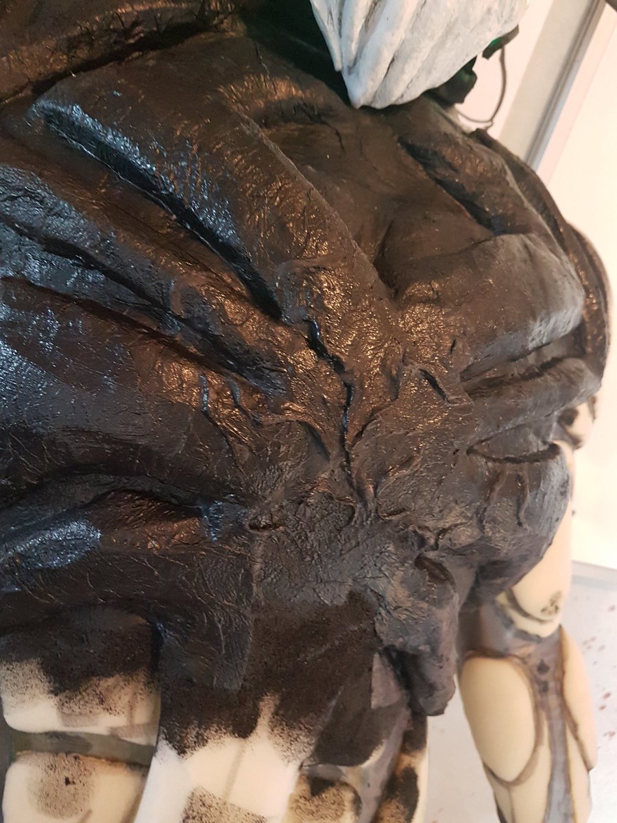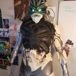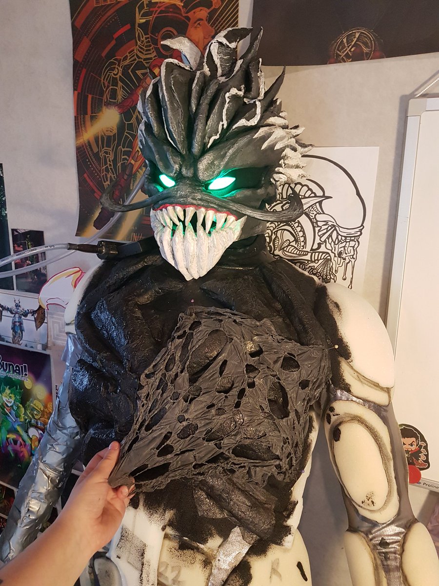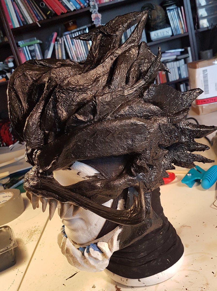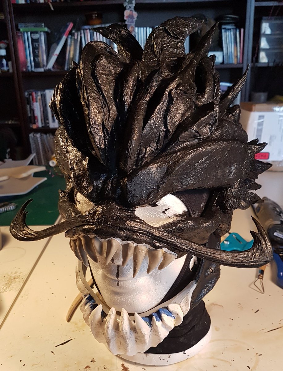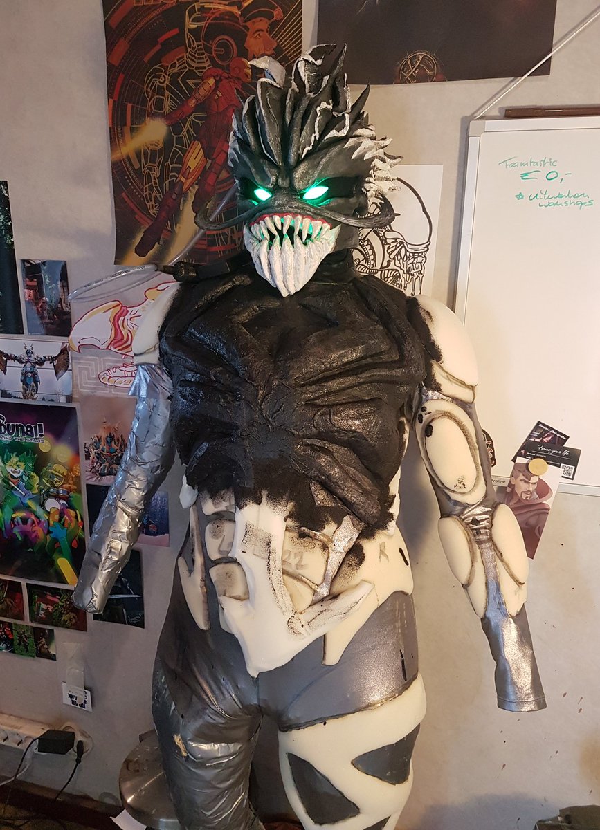 Taking some shots of my progress with the head in place. Wanted to get some visuals. The nernies I will cut up and put on the black places of the suit scattered throughout, not at all like how I pinned it on. Was just easy to show off like this #cosplay #doctorstrange #venom