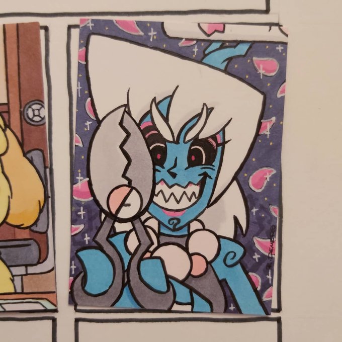 In the third spot for #SixFanarts is Shiromori from the @MysterySkulls music videos by @Mystery_Ben27. - #SixFanartsChallenge #sixfanart #fanart #mysteryskulls #art #drawing #sketchcards #atc #mysteryben27 #artisttradingcards #sketchcard #traditionalart #copicmarkers