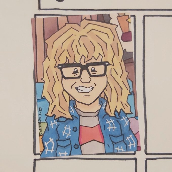 Over on my IG I started a #SixFanarts of all sketch cards. First up is Garth Algar (@danacarvey) from Wayne's World. I tried an angular style for my sketch cards to make this one and I really dig it. #garthalgar #waynesworld #fanart #sketchcards #atc #drawing