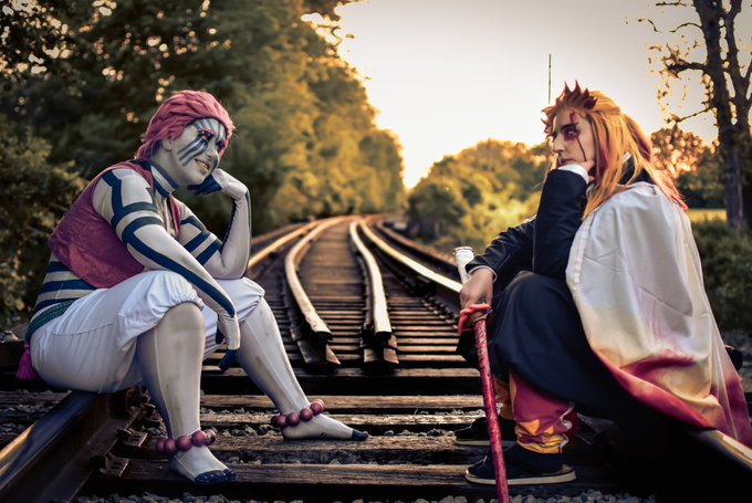 Sun meets moon~ Akaza: @Apollo_ven Rengoku: @EowinthC #demonslayer #mugentrain #rengoku #akaza #kimetsunoyaiba #cosplay