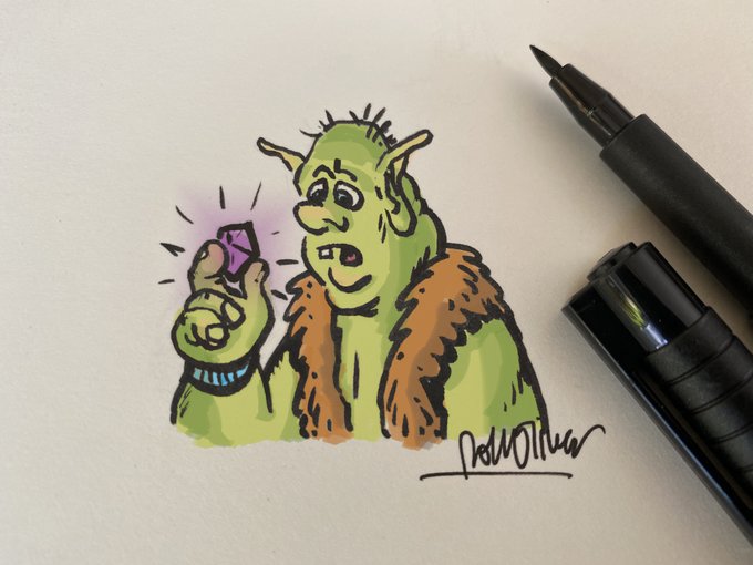 I never post my own art, but here we go... one a day... i'm participating in #inktober2021 and making myself do an ink sketch each day. Day 1: Crystal Tiny, quick ink sketch. Colored digitally.